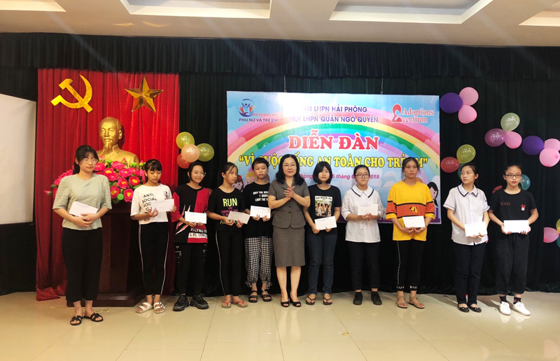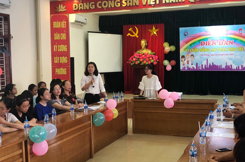 Chiều 26-6, Hội LHPN thành phố, Hội LHPN quận Ngô Quyền phối hợp với Tổ chức AC Thụy Điển tổ chức diễn đàn trẻ em năm 2019 với chủ đề: “Vì cuộc sống an toàn cho trẻ em”. Tới dự có bà Trần Thị Thu, Phó Chủ tịch Hội LHPN thành phố.