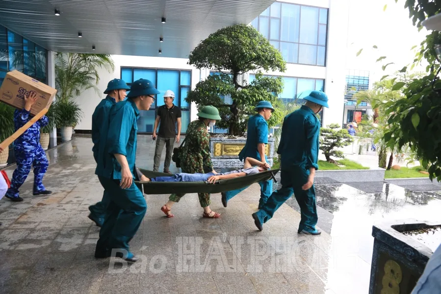 Tại cuộc diễn tập, tình huống giả định, gió giật mạnh làm số khu vực tầng 7,8 tòa nhà làm việc Trung tâm Chính trị-Hành chính quận bị bung cửa, vỡ kính, gây mất điện, nhiều người bị mắc kẹt. Nhận được tin báo, Ban Chỉ huy Phòng, chống thiên tai và tìm kiếm cứu nạn quận nhanh chóng tổ chức lực lượng, phương tiện, cứu hộ, cứu nạn, bảo đảm an toàn về người và tài sản.