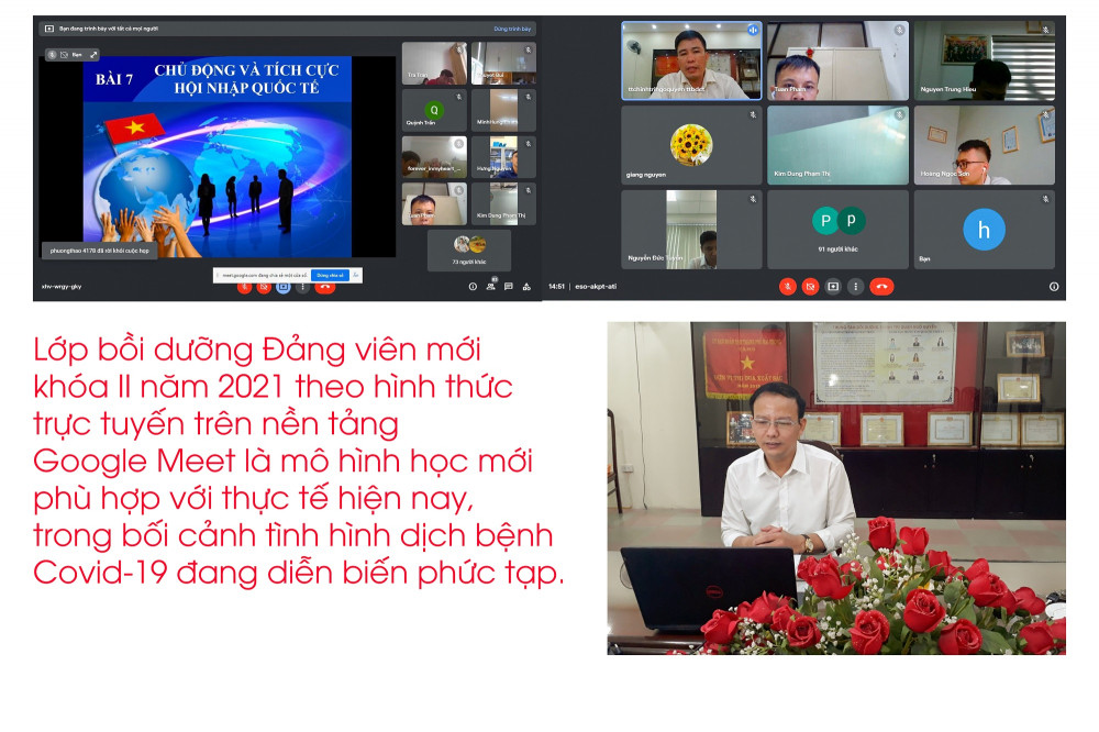 Trung tâm Bồi dưỡng Chính trị quận Ngô Quyền vừa khai giảng Lớp bồi dưỡng Đảng viên mới khóa II năm 2021 theo hình thức trực tuyến (Lớp học diễn ra từ ngày 16/8 đến 20/8/2021). Đây là mô hình học mới phù hợp với thực tế hiện nay, trong bối cảnh tình hình dịch bệnh Covid-19 đang diễn biến phức tạp.