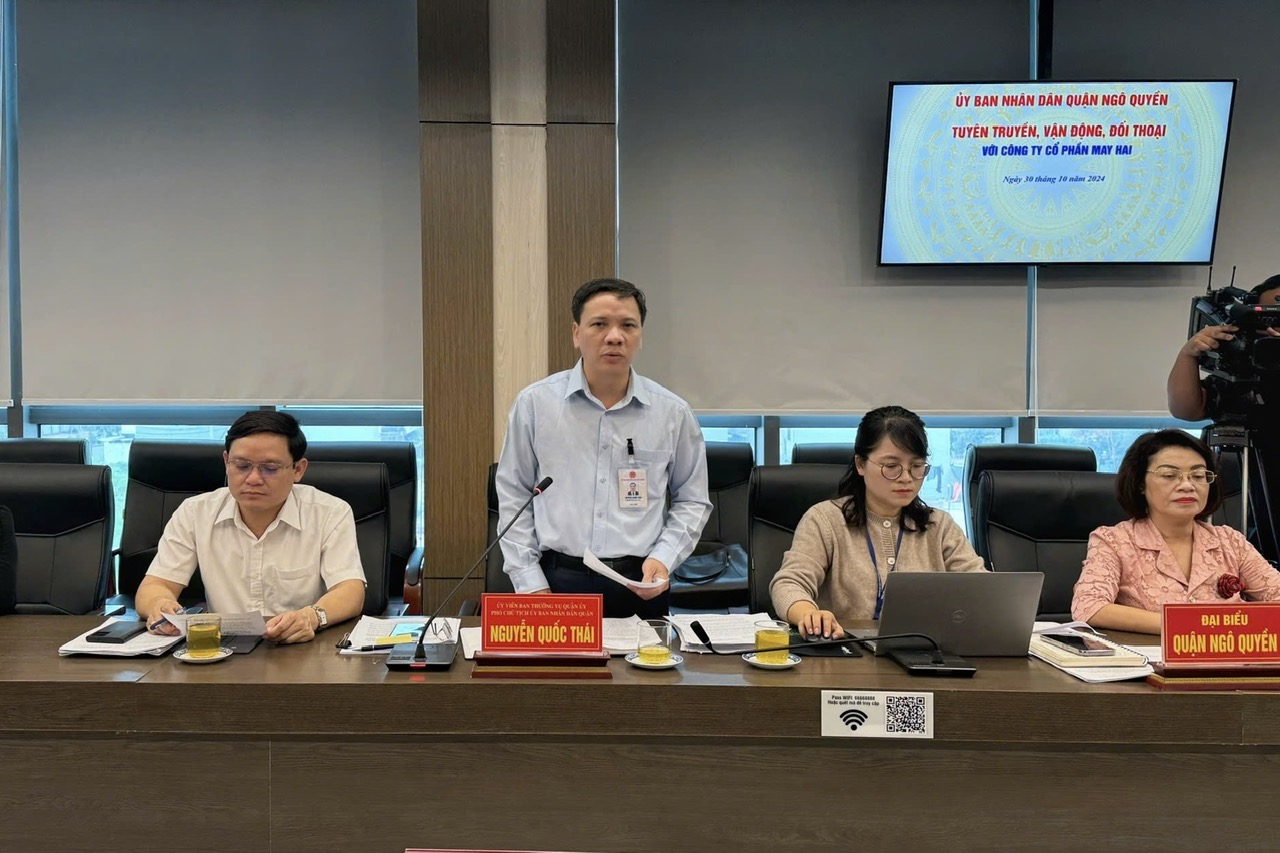 Sáng 30/10, UBND quận Ngô Quyền tổ chức tuyên truyền, vận động, đối thoại Công ty Cổ phần (CP) May Hai, nhằm thực hiện Quyết định của UBND thành phố về việc thu hồi khu đất tại số 72 Lạch Tray do hết hạn thuê và không còn phù hợp quy hoạch. Tuy nhiên, Công ty CP May Hai không tham dự.