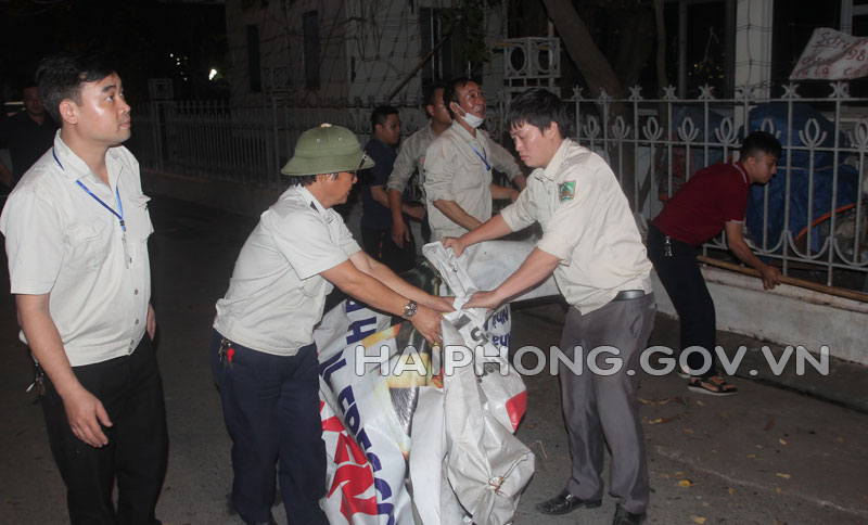 Trước đó, trong buổi tối và đêm ngày 18/11/2020, lực lượng chức năng của UBND quận Ngô Quyền đã đi kiểm tra và thu giữ 50 ghế nhựa, 10 biển tên quán, 24 bàn nhựa, 22 bàn inox, 1 xe đẩy, 10 bạt che, 40 cao bản gỗ và 1 bình bóng cười. Xác định các điểm vi phạm (các hàng quán bán hàng lấn chiếm vỉa hè, lòng đường; biển, bảng quảng cáo lắp đặt sai quy định), yêu cầu các hộ tự giác tháo dỡ, trả lại mặt bằng theo quy định.