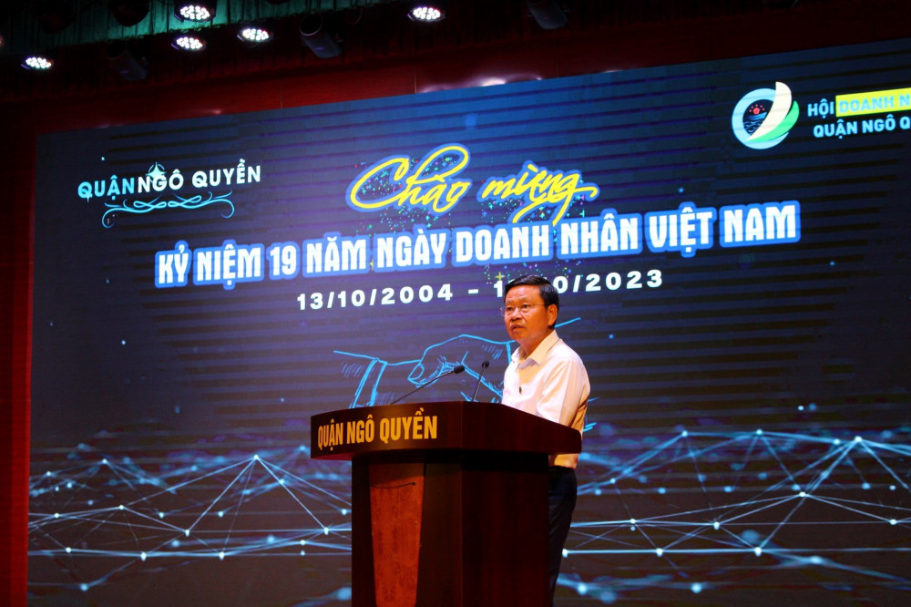 Phát biểu tại Hội nghị, đồng chí Phạm Văn Hà, Bí thư Quận uỷ Ngô Quyền cho biết, 9 tháng năm 2023, giá trị sản xuất công nghiệp do quận quản lý ước đạt 161.240 triệu đồng bằng 106,87% so với cùng kỳ. Tổng mức bán lẻ hàng hóa ước đạt 31.835.410 triệu đồng, bằng 120,78% so với cùng kỳ. Thu NSNN trên địa bàn 1.228.043 triệu đồng, bằng 91,3% so với cùng kỳ. Thu thuế ngoài quốc doanh đạt 478.349 triệu đồng, bằng 95,26% so với cùng kỳ. Những kết quả đạt được trong công tác chống dịch và phát triển kinh tế-xã hội thời gian qua là sự tổng hợp của nhiều yếu tố, trong đó phải kể đến sự đóng góp to lớn của cộng đồng doanh nghiệp, hộ kinh doanh trên địa bàn quận đã tạo chuyển biến rõ nét trên các lĩnh vực công nghiệp, thương mại, dịch vụ; giải quyết việc làm; đóng góp ngân sách nhà nước…