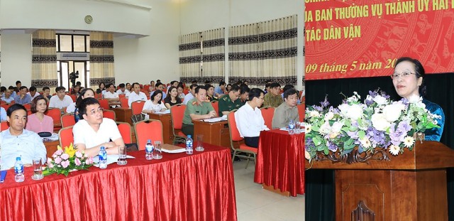 Phát biểu kết luận hội nghị, đồng chí Phó bí thư Thường trực Thành ủy, Trưởng Đoàn đại biểu Quốc hội Hải Phòng Nguyễn Thị Nghĩa nhấn mạnh, công tác dân vận là nhiệm vụ của hệ thống chính trị. Vì vậy, các cấp ủy Đảng, các địa phương, đơn vị nghiên cứu, tổ chức quán triệt các nội dung văn bản theo quy định đến đông đảo cán bộ, đảng viên, nhân dân phù hợp với điều kiện của địa phương mình. Thường xuyên đôn đốc, nắm tình hình, kiểm tra, kịp thời hướng dẫn tháo gỡ, giải quyết những khó khăn, vướng mắc phát sinh từ thực tế. Các cấp chính quyền thường xuyên quan tâm, rà soát, bổ sung, ban hành hệ thống các văn bản quy phạm pháp luật, các văn bản hành chính bảo đảm đồng bộ, kịp thời. Các cấp ủy, đơn vị, địa phương nêu cao tinh thần của nhân dân trong giám sát người đứng đầu theo quy định, rút kinh nghiệm từ thực tế, nhân rộng cách làm hay, thiết thực, hiệu quả. Đồng thời, tăng cường hiệu lực, hiệu quả công tác quản lý nhà nước về tôn giáo, thực hiện tốt các hoạt động trong Năm Dân vận chính quyền 2018; Mặt trận Tổ quốc Việt Nam các cấp, các hội, đoàn thể tăng cường tuyên truyền đến hội viên, nhân dân để tiếp tục thực hiện tốt hơn nữa công tác dân vận trong tình hình hiện nay.