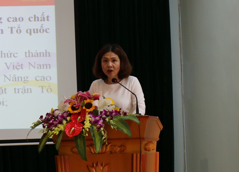 Đồng chí Bùi Thị Hồng Vân – Phó Bí thư Thường trực Quận ủy báo cáo kết quả thực hiện nhiệm vụ công tác quý I, phương hướng, nhiệm vụ trọng tâm quý II năm 2019