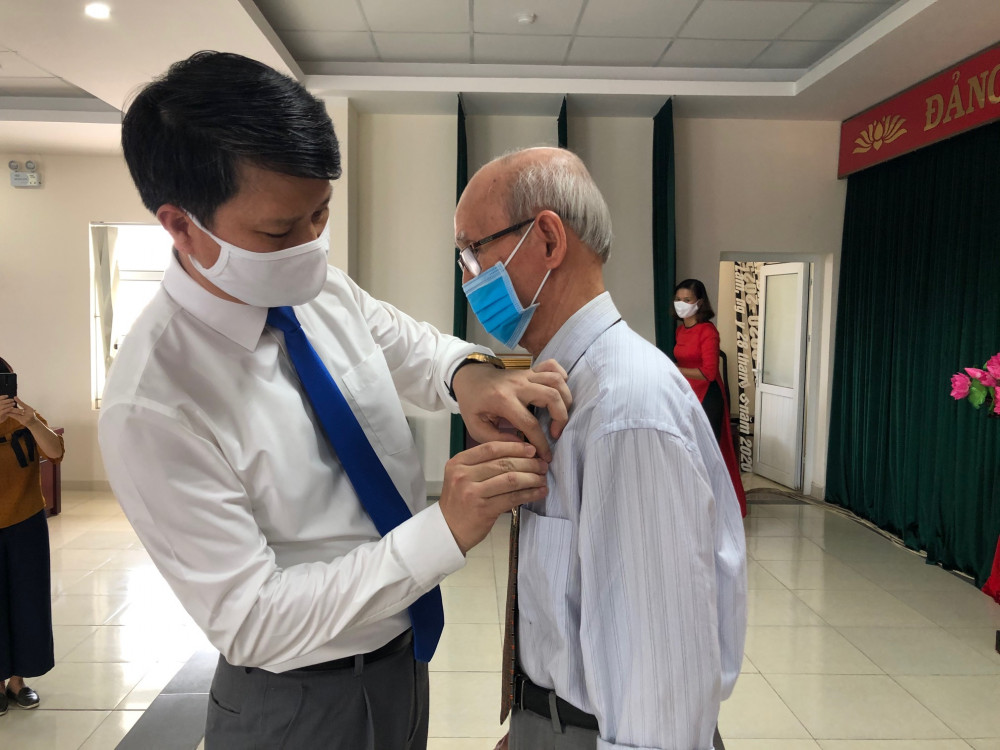 Thực hiện nghiêm các biện pháp phòng chống dịch Covid-19, đặc biệt là tránh tập trung đông người, các đồng chí lãnh đạo Quận ủy trao Huy hiệu đảng trực tiếp tại trụ sở các phường trên địa bàn.