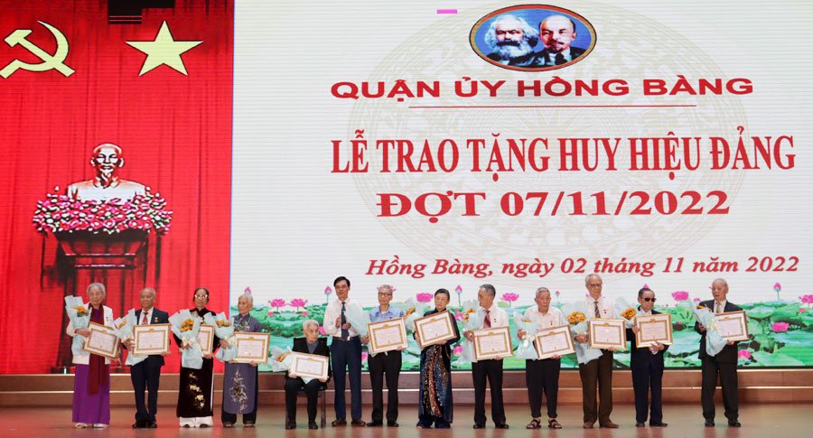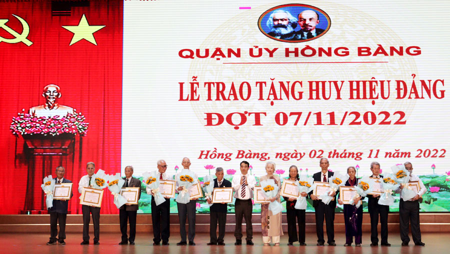Sáng 2/11, Quận ủy Hồng Bàng tổ chức Lễ trao tặng Huy hiệu Đảng cho các đồng chí đảng viên đợt 7/11/2022 thuộc Đảng bộ quận Hồng Bàng.
