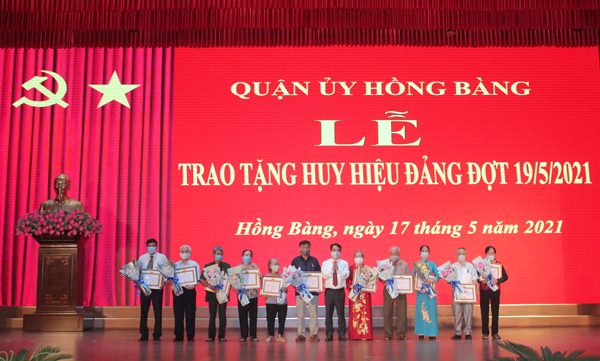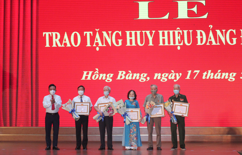 Sáng 17/5, Quận ủy Hồng Bàng tổ chức Lễ trao tặng Huy hiệu Đảng tại quận cho các đồng chí đảng viên đợt 19/5/2021.