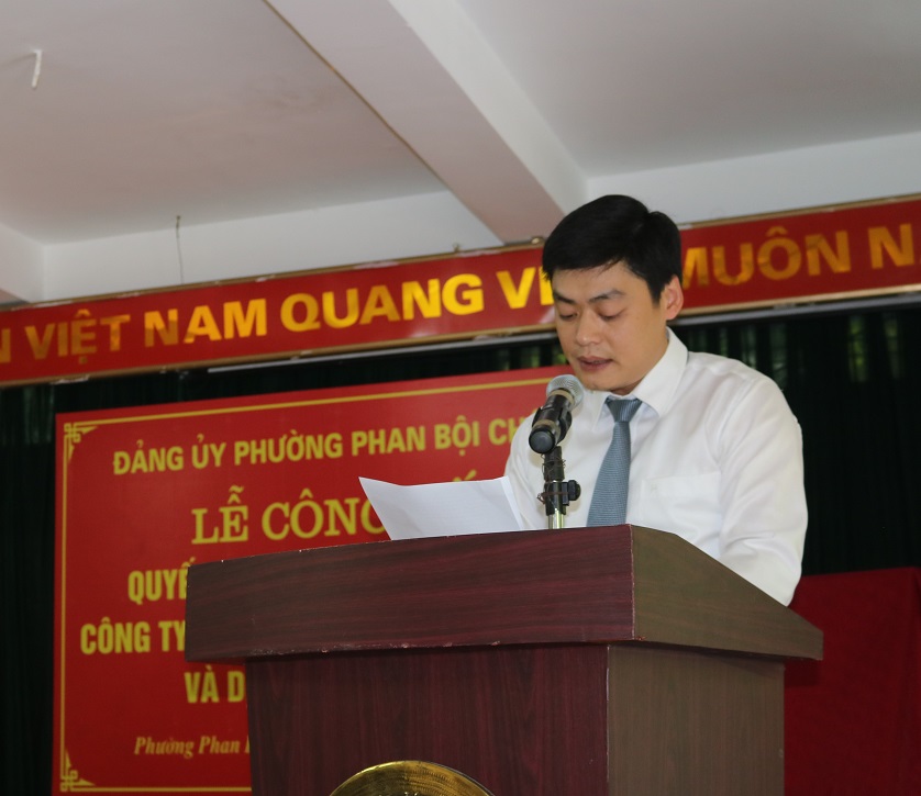 Dưới sự chỉ đạo sát sao và hướng dẫn của Ban Tổ chức Quận ủy và sự quan tâm, giúp đỡ của đồng chí Lê Thị Vân, Ủy viên Thường vụ, Trưởng ban Tuyên giáo Quận ủy, thành viên Ban chỉ đạo quận thực hiện Nghị quyết 28 phụ trách Đảng bộ phường, phường Phan Bội Châu đã quán triệt tinh thần Nghị quyết của Ban Thường vụ Thành ủy, Quận ủy và vai trò của tổ chức Đảng trong doanh nghiệp tới tập thể cán bộ, nhân viên Công ty.