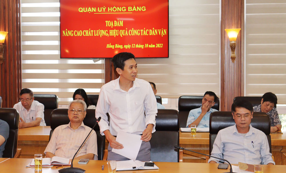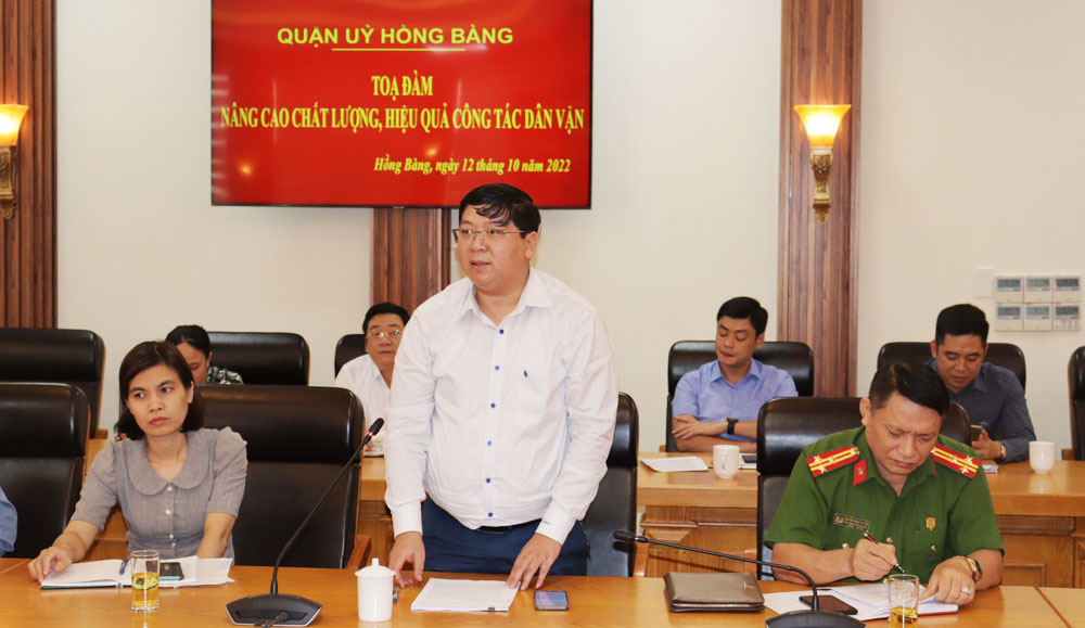 Chào mừng kỷ niệm 92 năm ngày truyền thống công tác Dân vận của Đảng (15/10/1930-15/10/2022), 23 năm “Ngày Dân vận của cả nước” (15/10/1999-15/10/2022). Chiều 12/10, Quận ủy Hồng Bàng tổ chức Hội nghị Tọa đàm “Nâng cao chất lượng, hiệu quả công tác dân vận”.