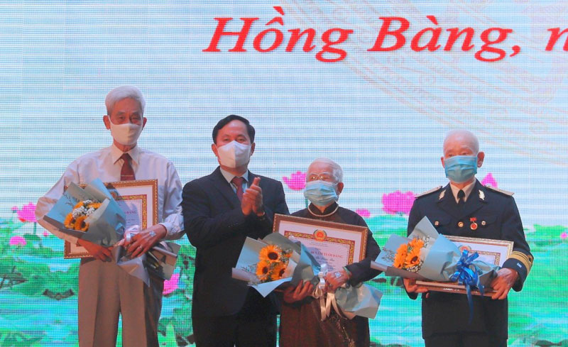 Nhân dịp này, Quận ủy Hồng Bàng tổ chức trao Huy hiệu Đảng cho 74 đảng viên, trao tặng kỷ niệm chương Vì sự nghiệp Dân vận cho 2 đồng chí.
