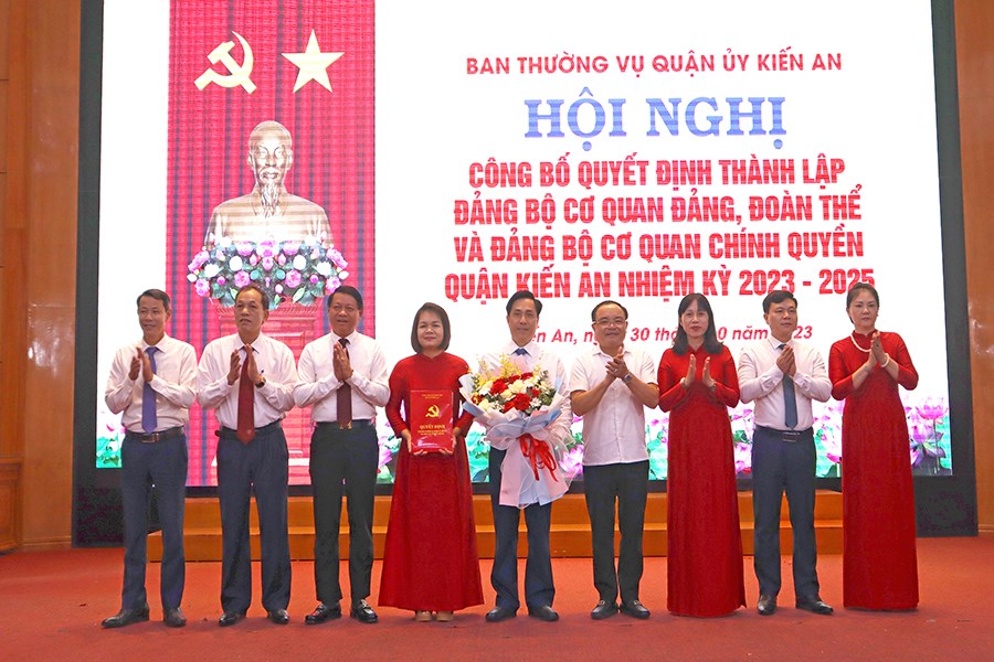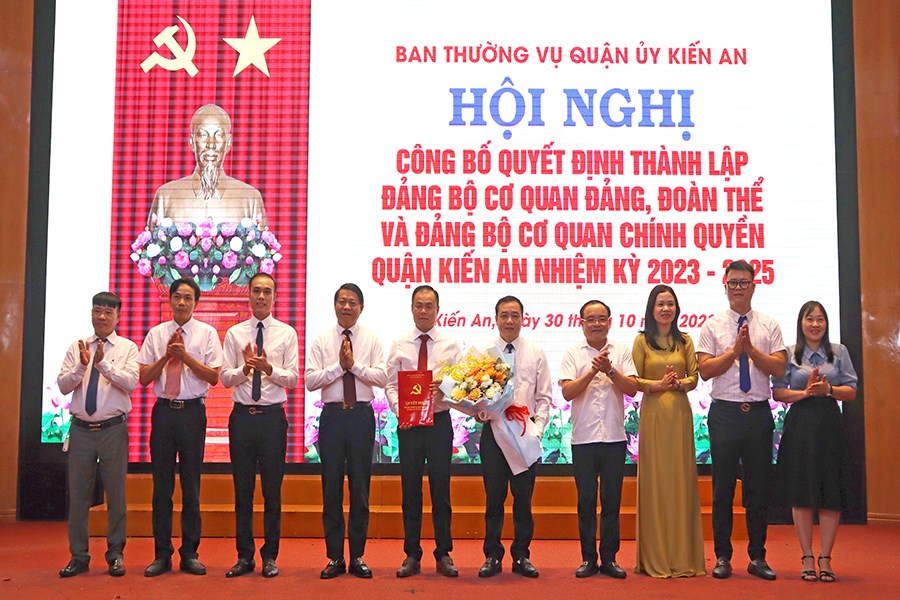 Tại Hội nghị, Phó Trưởng Ban Tổ chức Quận ủy Kiến An Nguyễn Văn Thắng đã công bố các Quyết định của Ban Thường vụ Quận ủy Kiến An, gồm: Quyết định số 1065-QĐ/QU ngày 23/10/2023 của Ban Thường vụ Quận ủy giải thể Chi bộ cơ quan Quận ủy Kiến An kể từ ngày 01/11/2023; chuyển 27 đảng viên của Chi bộ cơ quan Quận ủy đến sinh hoạt tại Đảng bộ Cơ quan Đảng, Đoàn thể quận Kiến An, nhiệm kỳ 2023-2025; Quyết định số 1066-QĐ/QU ngày 23/10/2023 của Ban Thường vụ Quận ủy giải thể Chi bộ Khối Dân vận quận Kiến An kể từ ngày 01/11/2023; chuyển 17 đảng viên Chi bộ Khối Dân vận quận Kiến An đến sinh hoạt tại Đảng bộ Cơ quan Đảng, Đoàn thể quận Kiến An, nhiệm kỳ 2023-2025; Quyết định số 1067-QĐ/QU ngày 23/10/2023 của Ban Thường vụ Quận ủy giải thể 17 Chi bộ cơ sở phòng, ban, đơn vị sự nghiệp thuộc UBND quận là đơn vị phối quản kể từ ngày 01/11/2023; chuyển 164 đảng viên của 17 chi bộ trên đến sinh hoạt tại Đảng bộ Cơ quan Chính quyền quận Kiến An, nhiệm kỳ 2023-2025; Quyết định số 1068-QĐ/QU ngày 23/10/2023 của Ban Thường vụ Quận ủy thành lập Đảng bộ Cơ quan Đảng, Đoàn thể quận Kiến An, nhiệm kỳ 2023-2025 gồm 05 chi bộ trực thuộc và 44 đảng viên kể từ ngày 01/11/2023.