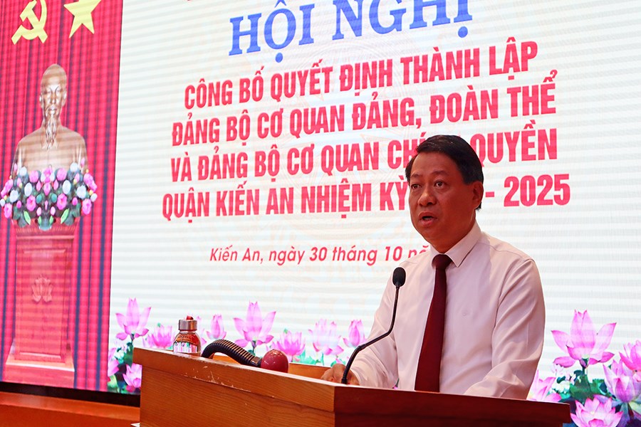 Sáng 30/10, Quận ủy Kiến An tổ chức Hội nghị công bố các Quyết định của Ban Thường vụ Quận ủy về giải thể một số Chi bộ cơ sở; thành lập Đảng bộ và chỉ định Ban Chấp hành Đảng bộ cơ quan Đảng, Đoàn và Đảng bộ Cơ quan Chính quyền quận Kiến An nhiệm kỳ 2023-2025.