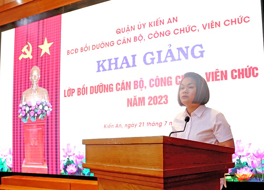 Phát biểu tại khai mạc Lớp Bồi dưỡng, đồng chí Bùi Thị Tuyết Mai, Phó Bí thư Thường trực Quận ủy, Trưởng Ban Chỉ đạo bồi dưỡng cán bộ, công chức, viên chức quận Kiến An nêu rõ: Trước những yêu cầu nhiệm vụ trong tình hình mới và thực hiện Nghị quyết Trung ương 7 khóa XIII về “Tập trung xây dựng đội ngũ cán bộ các cấp, nhất là cấp chiến lược, đủ phẩm chất, năng lực và uy tín, ngang tầm nhiệm vụ” việc bồi dưỡng nâng cao trình độ năng lực công tác, nhất là khả năng giải quyết và xử lý các tình huống nảy sinh trong thực tiễn cho đội ngũ cán bộ, công chức viên chức quận Kiến An là nhu cầu cần thiết. Đây cũng là dịp để cán bộ, công chức, viên chức nhằm trau dồi kiến thức cơ bản, bổ sung cập nhật kiến thức mới, nhất là kỹ năng, phương pháp xử lý các vấn đề.