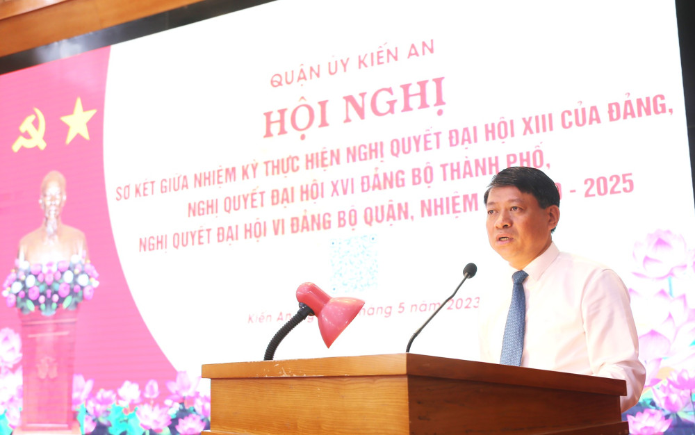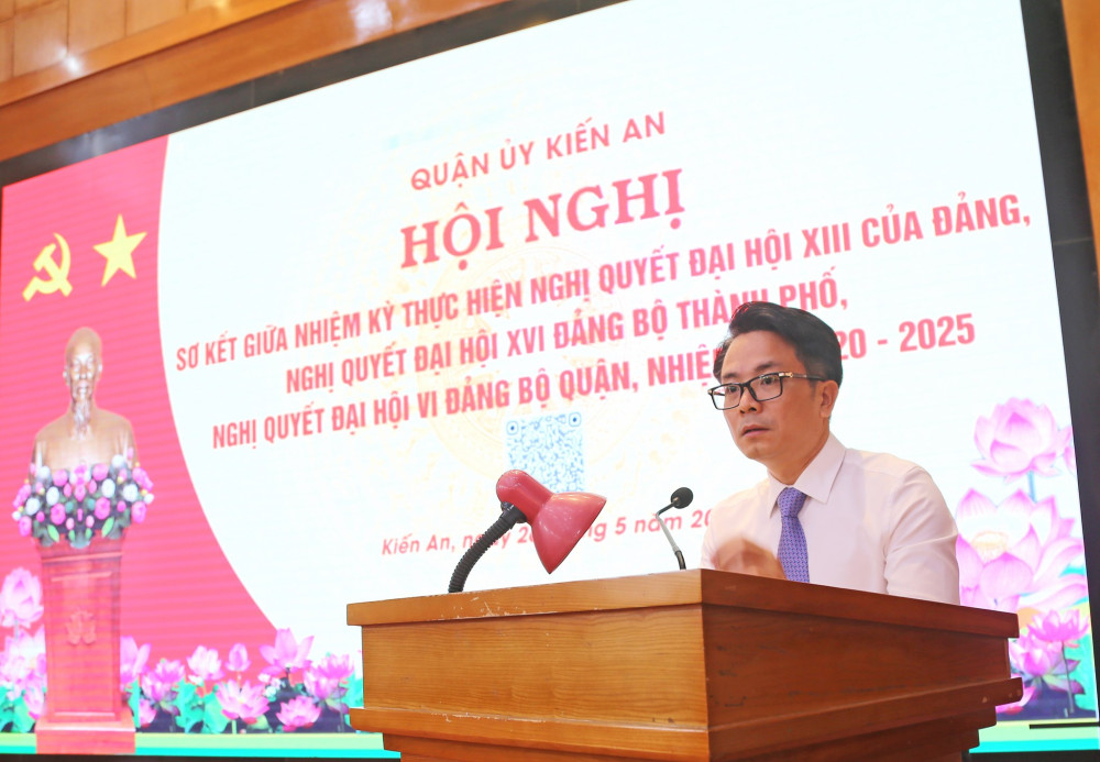 Sáng 26/5, Quận ủy Kiến An tổ chức Sơ kết giữa nhiệm kỳ đánh giá kết quả thực hiện Nghị quyết Đại hội Đảng bộ quận lần thứ VI, Nghị quyết Đại hội Đảng các cấp nhiệm kỳ 2020-2025.
