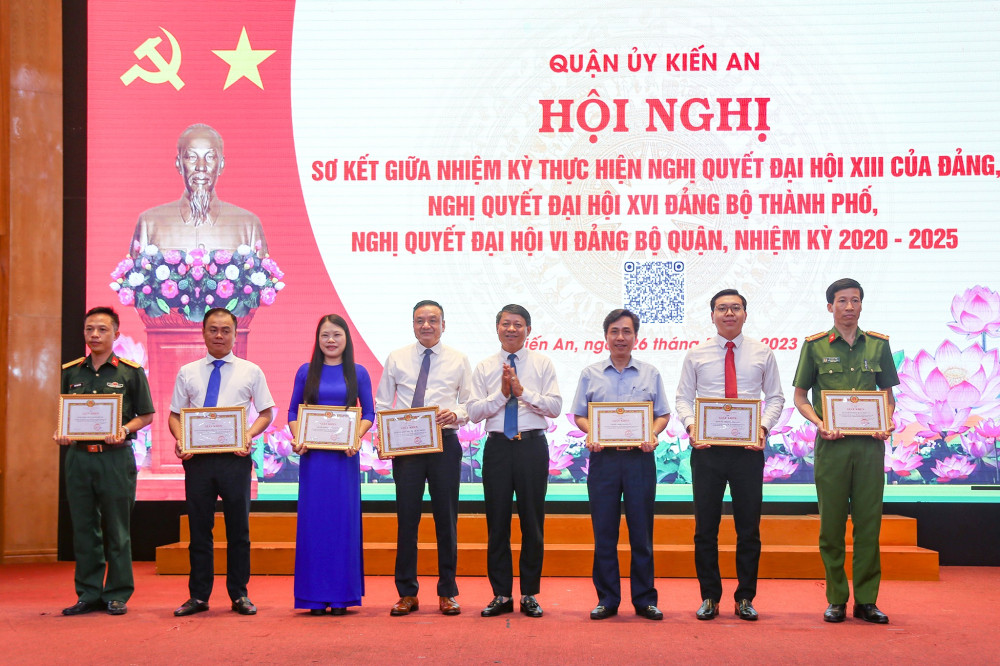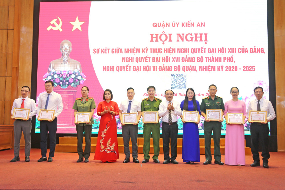 Nhân dịp này, 07 tập thể và 09 cá nhân tiêu biểu trong thực hiện Nghị quyết Đại hội Đảng các cấp nhiệm kỳ 2020-2025 được nhận Bằng khen của Ban Chấp hành Đảng bộ quận Kiến An.