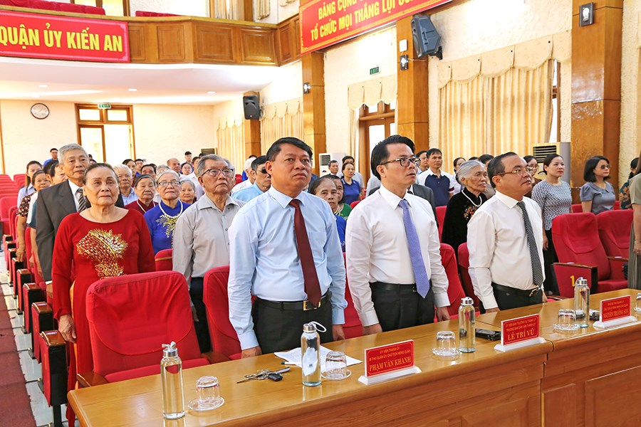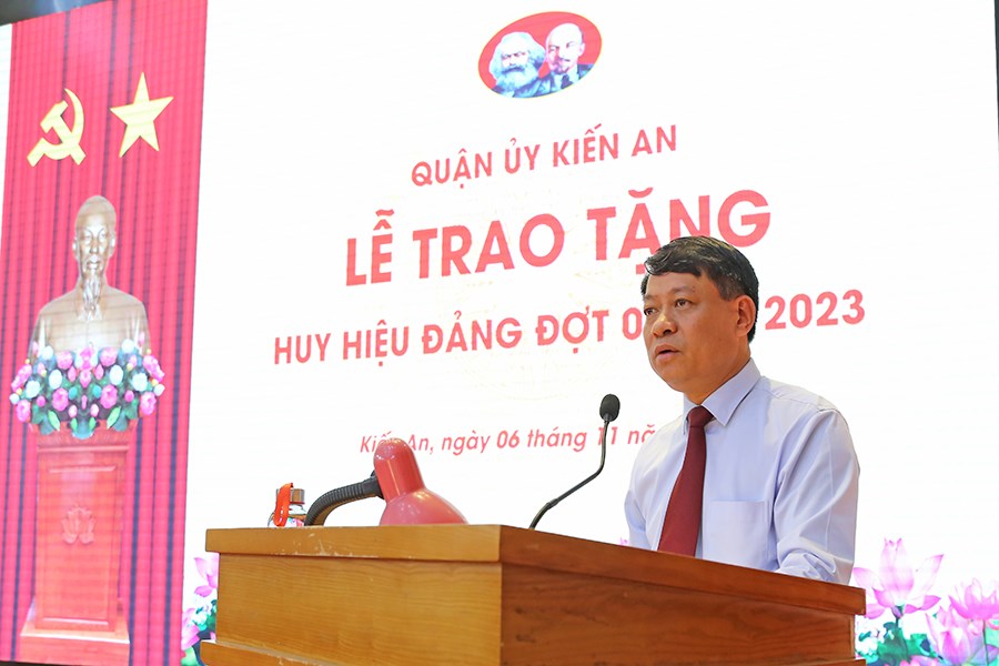 Bí thư Quận ủy Phạm Văn Khanh chúc mừng các đồng chí đảng viên được nhận Huy hiệu Đảng tại quận Kiến An và bày tỏ mong muốn các đồng chí đảng viên tiếp tục phát huy phẩm chất, đạo đức cách mạng, tinh thần tiền phong gương mẫu, tích cực tham gia, đóng góp xây dựng Đảng, hệ thống chính trị; luôn gương mẫu, là tấm gương sáng cho các lớp con, cháu noi theo. Đồng thời đề nghị cấp uỷ Chi bộ và Đảng uỷ các phường tiếp tục dành sự quan tâm sâu sắc, tạo điều kiện và tranh thủ sự hiến kế và đóng góp của các đồng chí được tặng Huy hiệu Đảng trong quá trình xây dựng và phát triển địa phương ngày càng văn minh, hiện đại.