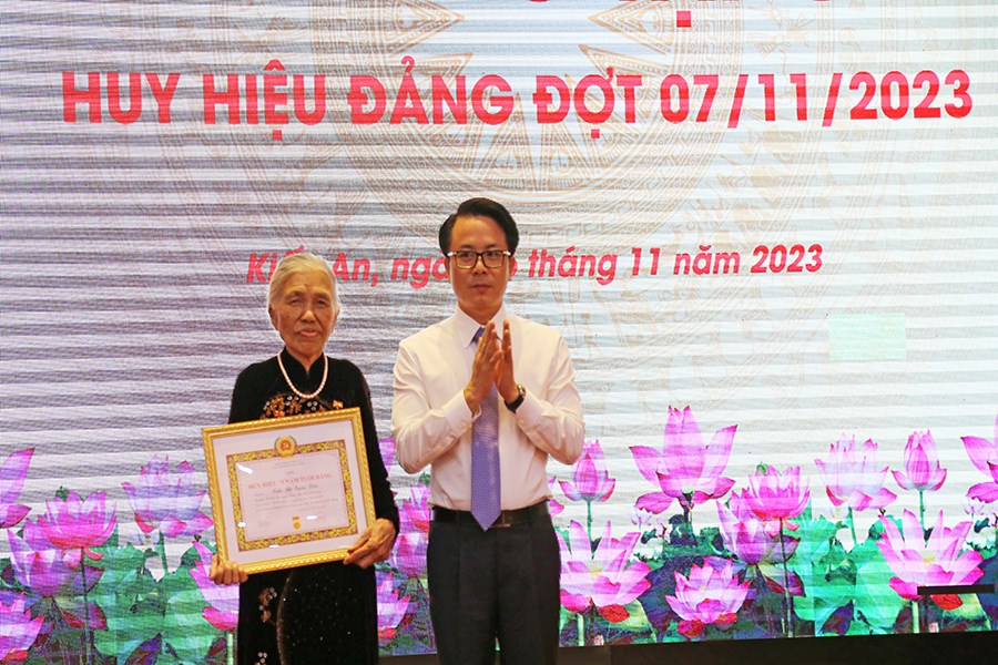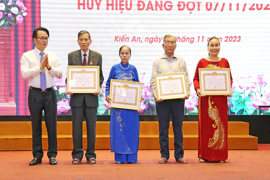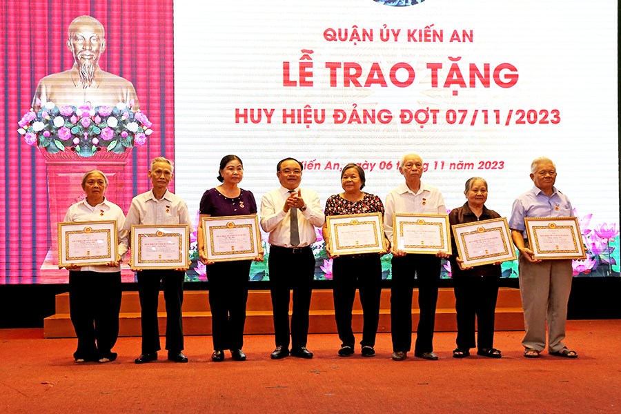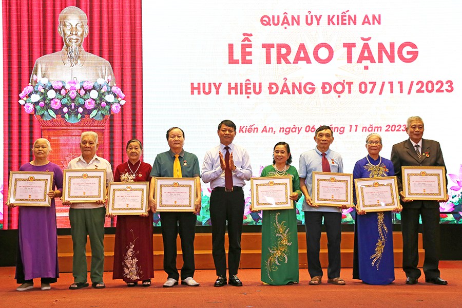 Trong đợt 07/11/2023, Đảng bộ Kiến An có 26 đảng viên được trao tặng Huy hiệu Đảng, có 06 đảng viên do sức khỏe yếu không đến dự. Tại Lễ trao Huy hiệu Đảng, Quận ủy Kiến An trao tặng Huy hiệu 75 năm tuổi Đảng cho 01 đảng viên; 04 đảng viên được tặng Huy hiệu 60 năm tuổi Đảng và 15 đảng viên được tặng Huy hiệu 55 năm tuổi Đảng.