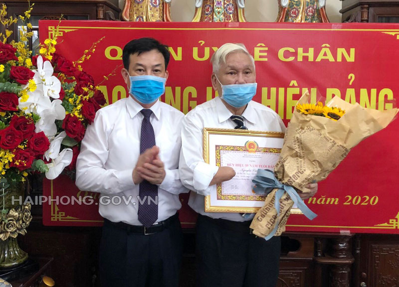 Do ảnh hưởng của dịch bệnh COVID-19, sáng 27/8, Quận ủy Lê Chân tổ chức các Đoàn đến trực tiếp các gia đình các đồng chí đảng viên được trao tặng Huy hiệu Đảng đợt 2/9/2020.