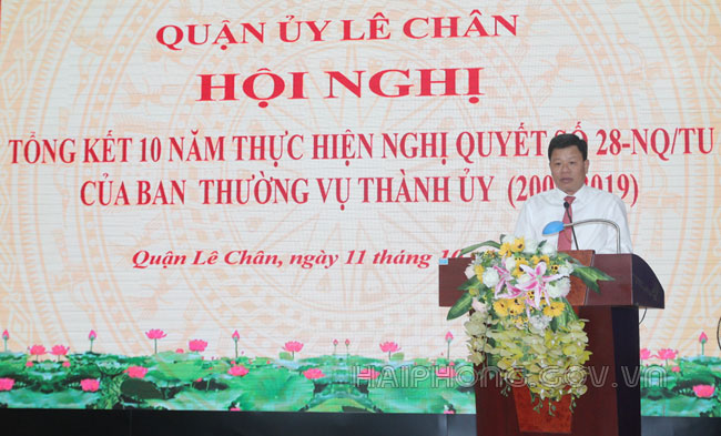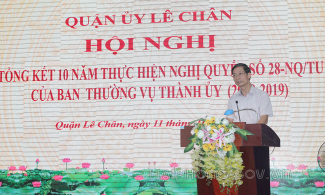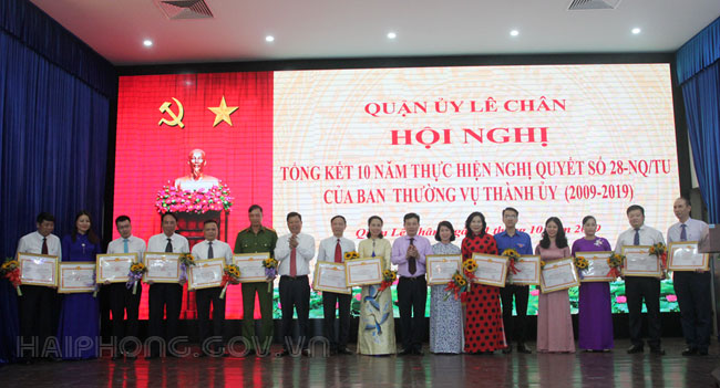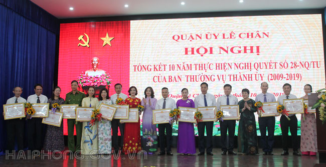 Nhân dịp này, Quận ủy Lê Chân biểu dương, khen thưởng 15 tập thể và 19 cá nhân có thành tích xuất sắc trong thực hiện Nghị quyết số 28-NQ/TU của Ban Thường vụ Thành ủy.