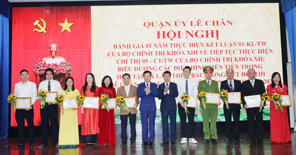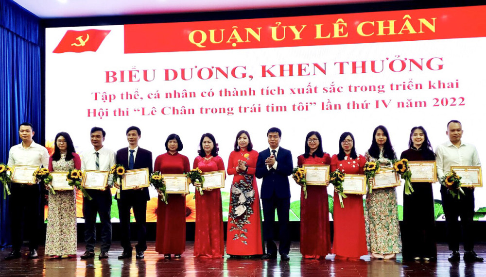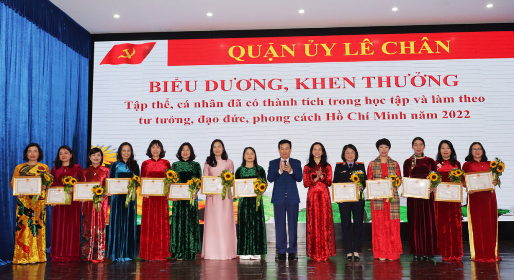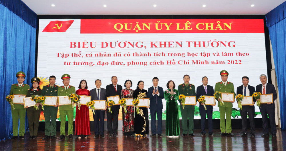 Nhân dịp này, UBND quận Lê Chân tặng Giấy khen cho 27 tập thể, 11 cá nhân đã có thành tích trong học tập và làm theo tư tưởng, đạo đức, phong cách Hồ Chí Minh năm 2022; Ban Thường vụ Quận ủy tặng Giấy khen cho 7 tập thể, 12 cá nhân có thành tích xuất sắc trong triển khai Hội thi “Lê Chân trong trái tim tôi” lần thứ IV năm 2022.