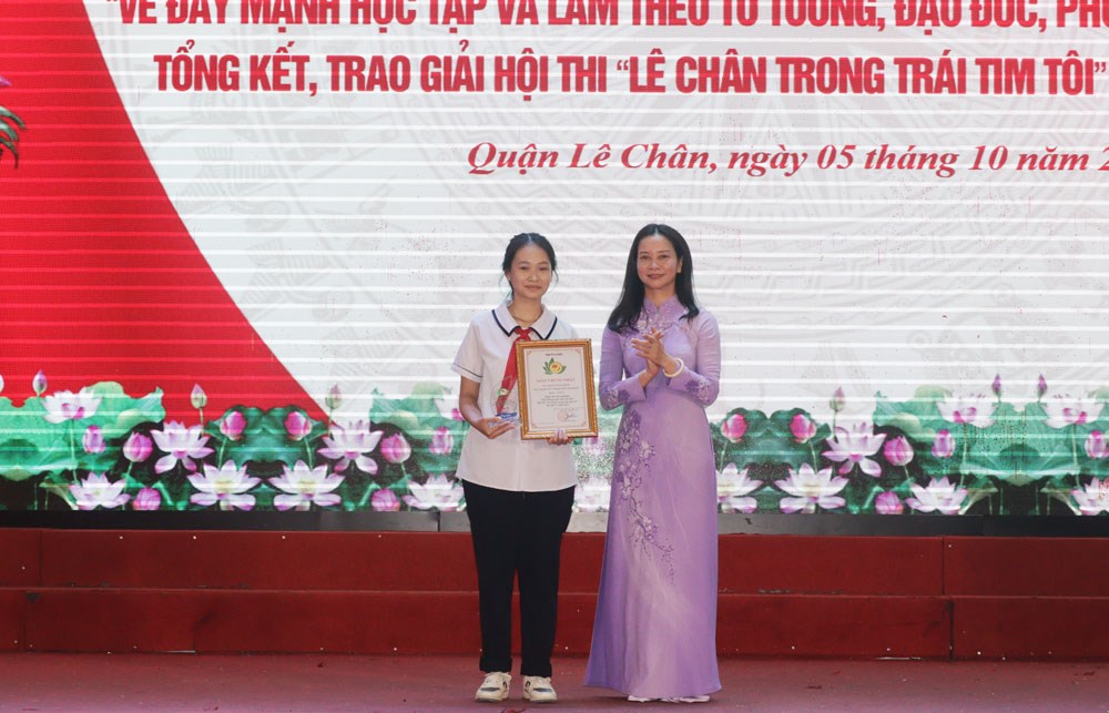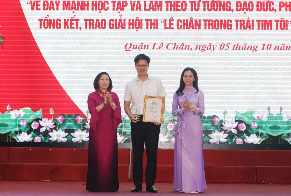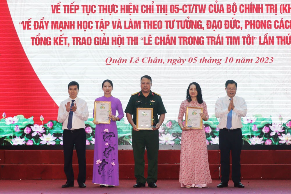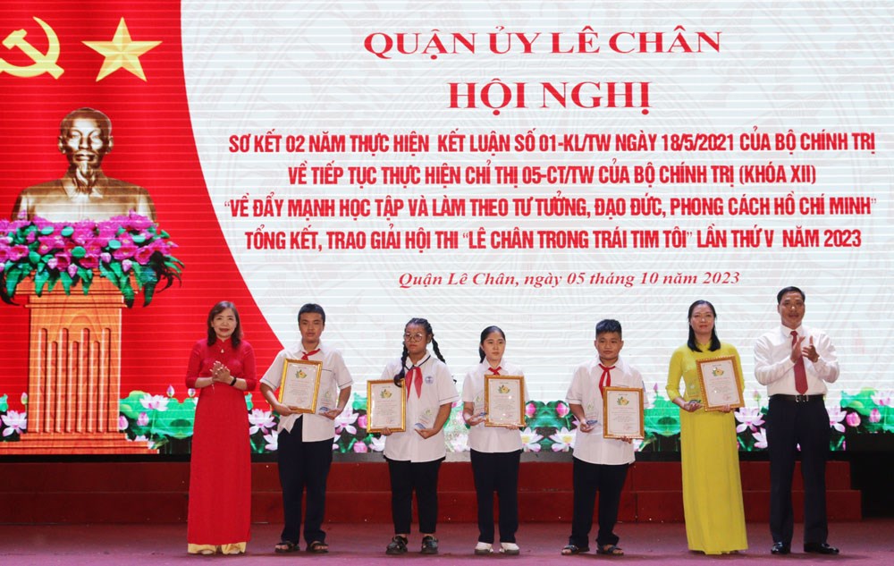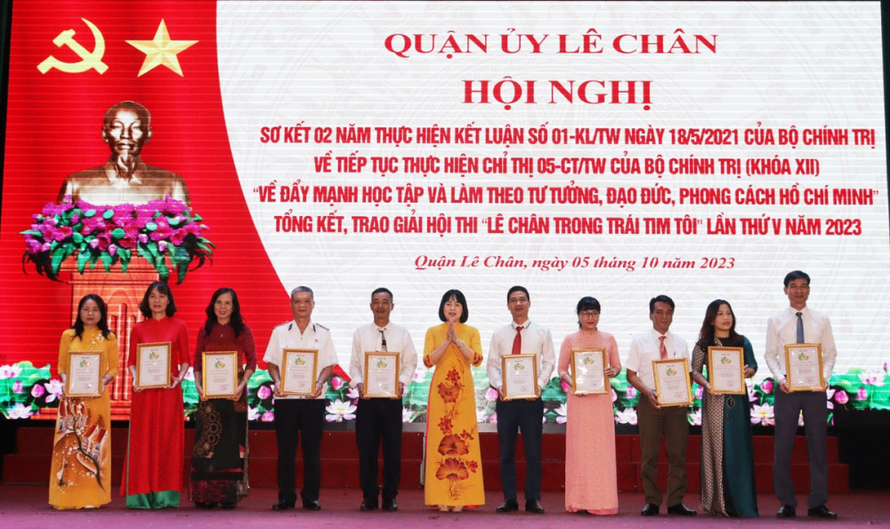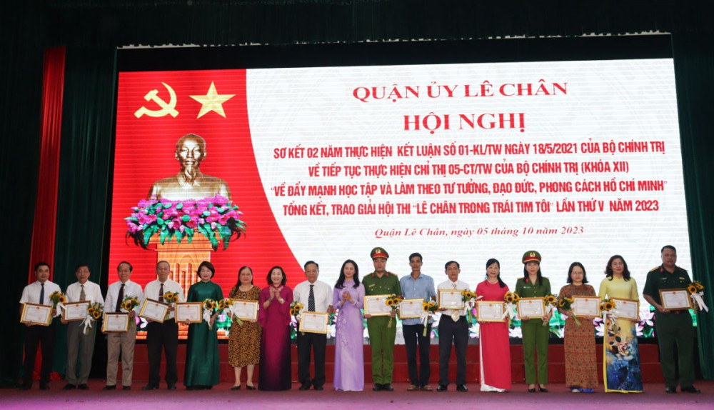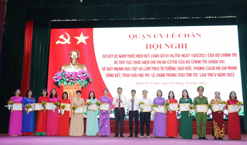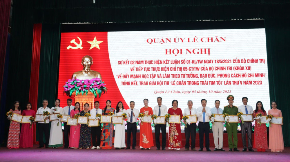 Sáng 5/10, Quận ủy Lê Chân tổ chức hội nghị sơ kết 02 năm thực hiện Kết luận số 01-KL/TW, ngày 18/5/2021 của Bộ Chính trị về tiếp tục thực hiện Chỉ thị 05-CT/TW của Bộ Chính trị khóa XII “về đẩy mạnh học tập và làm theo tư tưởng, đạo đức, phong cách Hồ Chí Minh”; biểu dương các điển hình tiêu biểu trong học tập và làm theo Bác; tổng kết, trao giải Hội thi “Lê Chân trong trái tim tôi” lần thứ V năm 2023.