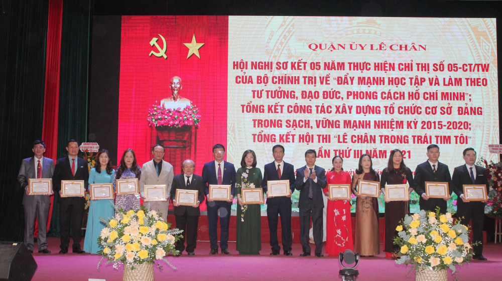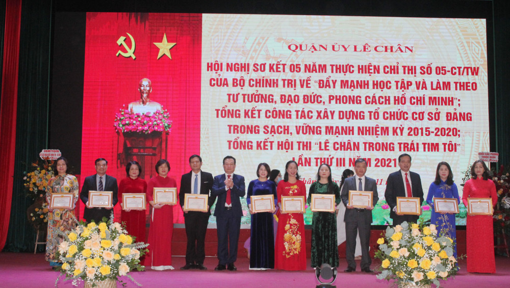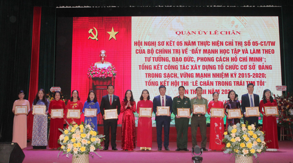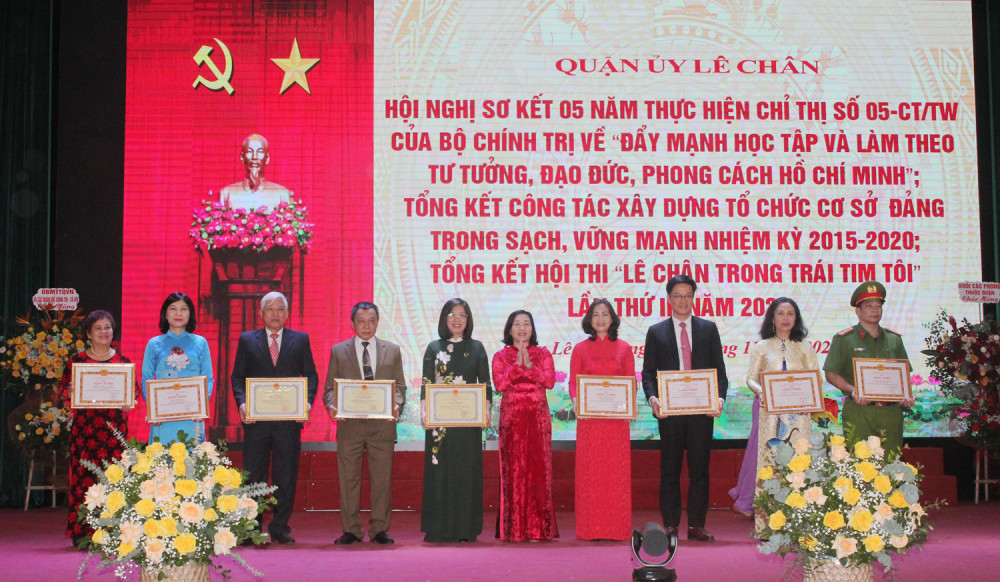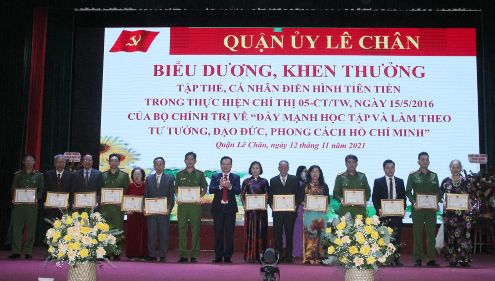 Nhân dịp này, UBND thành phố tặng Bằng khen cho 3 cá nhân, UBND quận Lê Chân tặng Giấy khen cho 44 tập thể đã có thành tích xuất sắc tiêu biểu trong học tập và làm theo tư tưởng, đạo đức, phong cách Hồ Chí Minh.