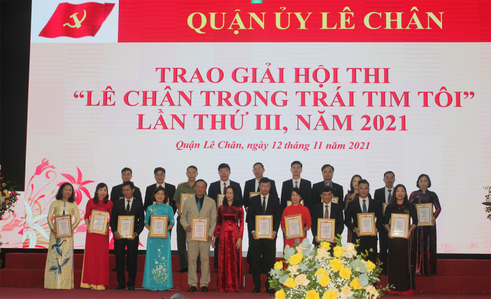 Quận ủy Lê Chân cũng trao giải cho 20 tập thể, 11 cá nhân đạt giải trong Hội thi Lê Chân trong trái tim tôi lần thứ III năm 2021.