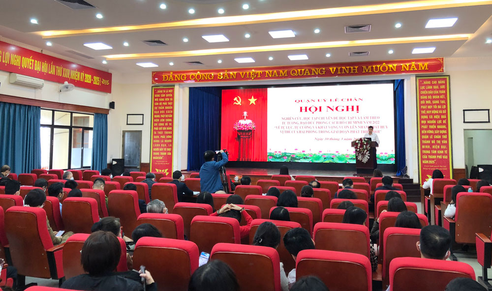 Chiều 30/3, Quận ủy Lê Chân tổ chức Hội nghị nghiên cứu, học tập Chuyên đề học tập và làm theo tư tưởng, đạo đức, phong cách Hồ Chí Minh năm 2022 “về ý chí tự lực, tự cường và khát vọng vươn lên nhằm phát huy vị thế của Hải Phòng trong giai đoạn phát triển mới”.