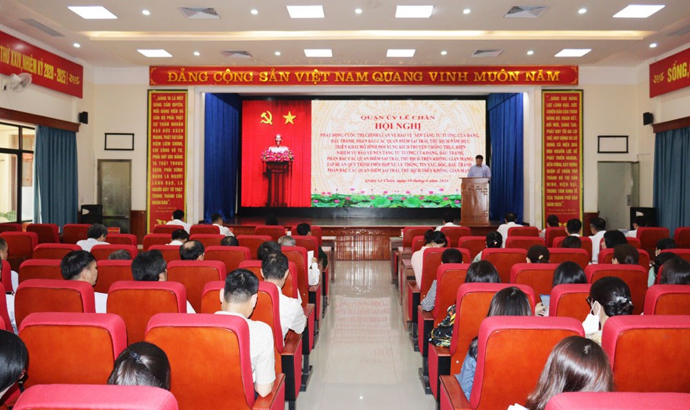 Chiều 19/4, Quận ủy Lê Chân tổ chức Hội nghị phát động Cuộc thi chính luận về bảo vệ nền tảng tư tưởng của Đảng, đấu tranh phản bác các quan điểm sai trái, thù địch năm 2023; tập huấn quy trình phối hợp xử lý thông tin xấu, độc, đấu tranh phản bác các quan điểm sai trái, thù địch trên không gian mạng.