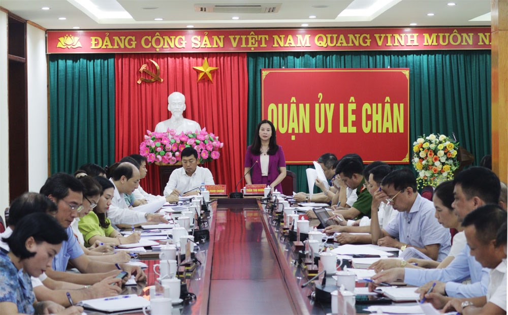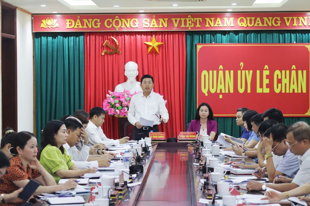 Phát biểu chỉ đạo tại hội nghị, Thiếu tướng Vũ Thanh Chương, Giám đốc Công an thành phố ghi nhận, đánh giá cao những kết quả Đảng bộ quận Lê Chân đạt được trong 9 tháng năm 2023. Để hoàn thành các chỉ tiêu, nhiệm vụ ở mức cao nhất, Giám đốc Công an thành phố đề nghị Ban Chấp hành Đảng bộ quận tiếp tục tập trung chỉ đạo thực hiện quyết liệt các mục tiêu, chỉ tiêu Nghị quyết Ban Chấp hành Đảng bộ quận đã đề ra, nhất là các chỉ tiêu khó hoàn thành, đang đạt tỷ lệ thấp như: Thu ngân sách, giải phóng mặt bằng, giải ngân vốn đầu tư công… Tăng cường công tác phòng cháy chữa cháy, tổ chức diễn tập, thực hành phòng cháy chữa cháy để rút kinh nghiệm và xử lý tốt tình huống khi xảy ra cháy, nổ; làm tốt công tác nắm bắt dư luận xã hội, giải quyết đơn thư, tổ chức đối thoại với nhân dân, không để đơn thư vượt cấp.