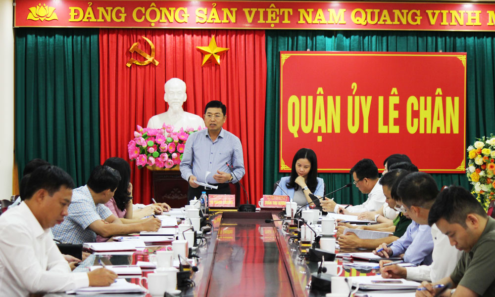 Phát biểu chỉ đạo tại Hội nghị, đồng chí Thiếu tướng Vũ Thanh Chương, Giám đốc Công an thành phố ghi nhận Quận ủy Lê Chân quyết liệt trong lãnh đạo, chỉ đạo, triển khai thực hiện nhiệm vụ, cơ bản hoàn thành các chỉ tiêu, nhiệm vụ theo kế hoạch đề ra trong tháng 8 và 8 tháng năm 2022. Đồng thời đề nghị Quận ủy Lê Chân trong tháng 9 và 4 tháng cuối năm 2022 cần quan tâm đến công tác giải ngân vốn đầu tư công, đấu giá đất, giải phóng mặt bằng các dự án trọng điểm, chỉnh trang đô thị, quản lý đất đai…