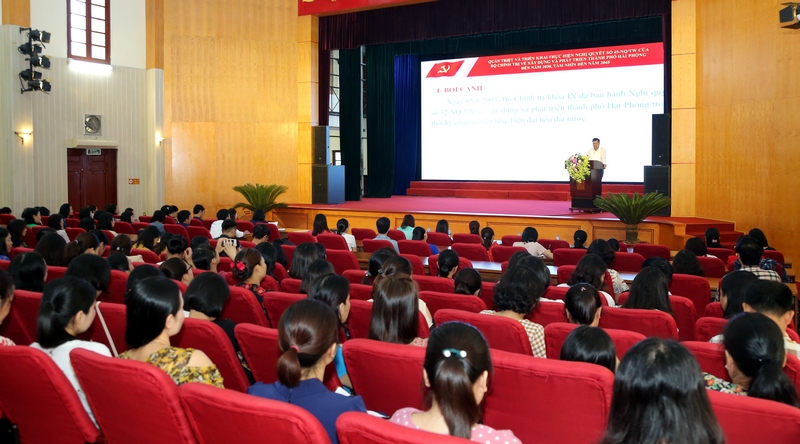 Đồng chí Bí thư Quận ủy Lê Chân mong muốn mỗi cán bộ, giáo viên là những hạt nhân tuyên truyền, phổ biến rộng rãi tinh thần, nội dung và các chương trình hành động, mục tiêu phát triển của thành phố, quận Lê Chân tới các tầng lớp nhân dân.