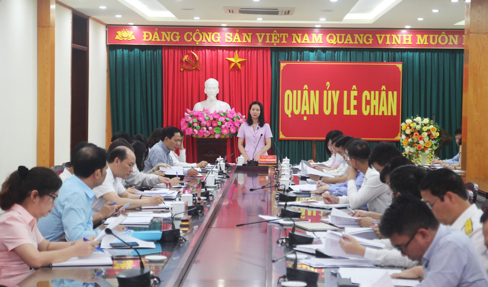 Về nhiệm vụ trọng tâm tháng 5/2022, Quận ủy Lê Chân đề ra 12 nhóm nhiệm vụ trọng tâm trong công tác xây dựng Đảng, xây dựng chính quyền; vận động Nhân dân và trong công tác phát triển kinh tế-xã hội, ,đảm bảo quốc phòng-an ninh. Trong đó, tập trung chỉ đạotriển khai Hội thi Lê Chân trong trái tim tôi lần thứ IV năm 2022. Tiếp tục bố trí, sắp xếp, điều động, luân chuyển một số chức danh cán bộ đối với những đơn vị còn khuyết, thiếu; chỉ đạo các chi, đảng bộ làm tốt công tác phát triển đảng viên. Chỉ đạo thành lập 1 tổ chức cơ sở đảng theo Nghị quyết số 28-NQ/TU của Ban Thường vụ Thành ủy. Tiếp tục thực hiện nghiêm túc Kế hoạch của Ban Thường vụ Quận ủy về đưa lãnh đạo, cán bộ dự sinh hoạt chi bộ tại cơ sở. Tăng cường công tác nắm tình hình tư tưởng Nhân dân, tình hình các dự án trên địa bàn. Tiếp tục chỉ đạo Đại hội Đoàn Thanh niên Cộng sản Hồ Chí Minh, Đại hội Hội Chữ thập đỏ quận và cơ sở, Đại hội Hội Cựu chiến binh quận nhiệm kỳ 2022-2027.