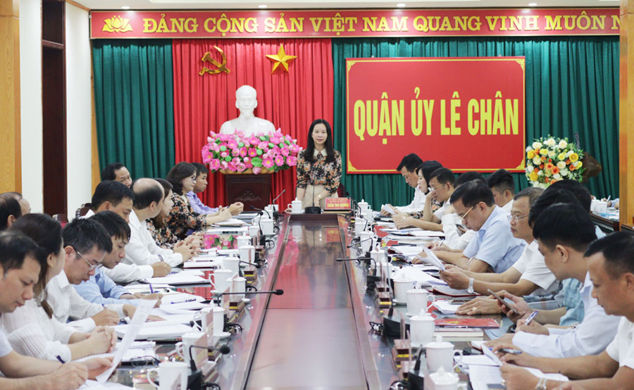 Về nhiệm vụ trọng tâm 3 tháng cuối năm 2022, trong công tác xây dựng Đảng, Quận ủy Lê Chân tập trung tổ chức tốt Hội thi “Lê Chân trong trái tim tôi” lần thứ IV; bố trí, sắp xếp, điều động, luân chuyển cán bộ đối với những đơn vị còn khuyết; kết nạp đảng viên phấn đấu hoàn thành và hoàn thành vượt chỉ tiêu Thành ủy giao; tăng cường nắm tình hình, tư tưởng các tầng lớp Nhân dân, tình hình tín ngưỡng, tôn giáo, dân tộc, những vấn đề phức tạp như công tác đền bù giải phóng mặt bằng, giải quyết kịp thời các vụ việc phát sinh ngay từ cơ sở…