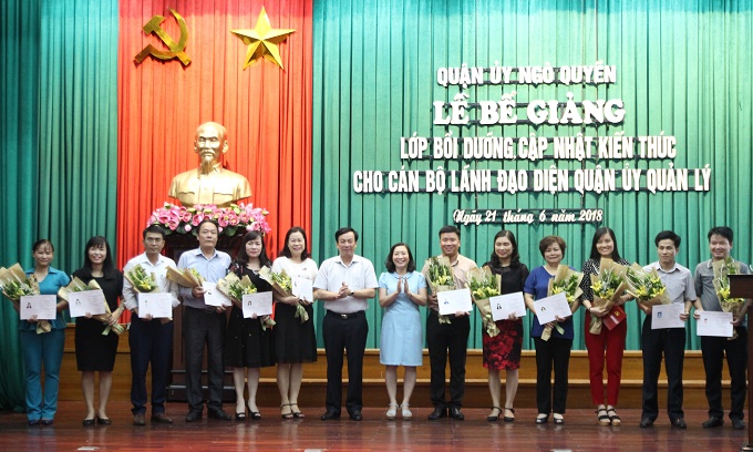Lãnh đạo quận Ngô Quyền trao hoa và giấy chứng nhận cho các học viên