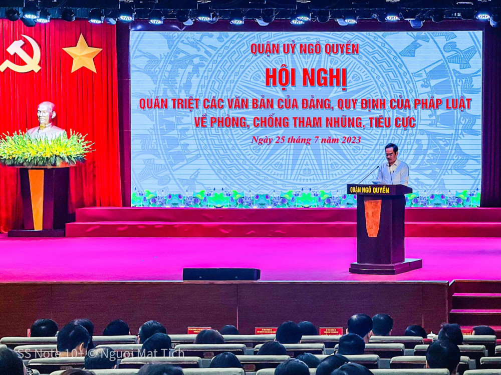 Kết luận Hội nghị, đồng chí Trịnh Quang Trường Phó Bí thư Thường trực Quận ủy, Chủ tịch HĐND quận Ngô Quyền nhấn mạnh, đấu tranh chống tham nhũng, tiêu cực là một nhiệm vụ đặc biệt quan trọng nhằm xây dựng Đảng và hệ thống chính trị trong sạch, vững mạnh đòi hỏi mỗi cán bộ, đảng viên, công chức, viên chức quận cần “Nhận thức phải chín, tư tưởng phải thông, quyết tâm phải lớn, phương pháp phải đúng, để góp phần làm chuyển biến tình hình, đẩy mạnh công tác phòng chống tham nhũng, tiêu cực”.