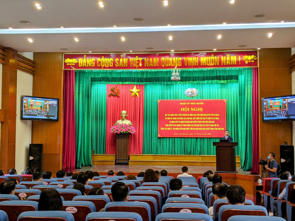 Sáng 17/3, Ban Thường vụ Quận ủy Ngô Quyền tổ chức Hội nghị trực tuyến toàn quận quán triệt, tuyên truyền và triển khai thực hiện Nghị quyết số 02-NQ/QU, ngày 15/12/2021 về củng cố, nâng cao năng lực lãnh đạo, sức chiến đấu của tổ chức cơ sở Đảng và đảng viên tại Đảng bộ Quận Ngô Quyền trong tình hình hiện nay và Nghị quyết số 04-NQ/QU, ngày 15/12/2021 về tăng cường sự lãnh đạo của các cấp ủy Đảng đối với công tác quản lý, thu ngân sách nhà nước trên địa bàn quận Ngô Quyền trong tình hình mới. Đồng chí Phạm Văn Hà, Bí thư Quận ủy chủ trì Hội nghị.