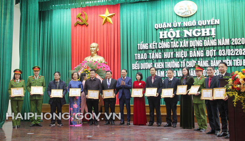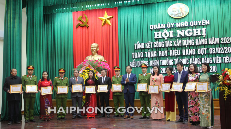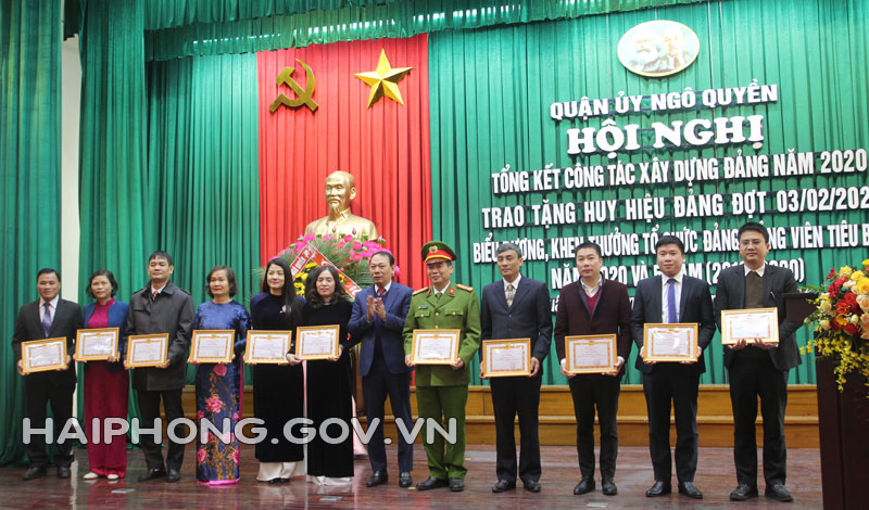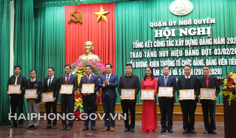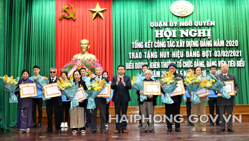 Sáng 12/1, Quận ủy Ngô Quyền tổ chức Hội nghị tổng kết công tác xây dựng Đảng năm 2020; trao tặng Huy hiệu Đảng đợt 3/2/2021; biểu dương, khen thưởng đảng viên “Hoàn thành xuất sắc nhiệm vụ” 5 năm liền và tổ chức đảng “Trong sạch, vững mạnh” tiêu biểu năm 2020 và 5 năm liền 2015-2020. Tới dự có đồng chí Đỗ Mạnh Hiến, Phó Bí thư Thường trực Thành ủy.