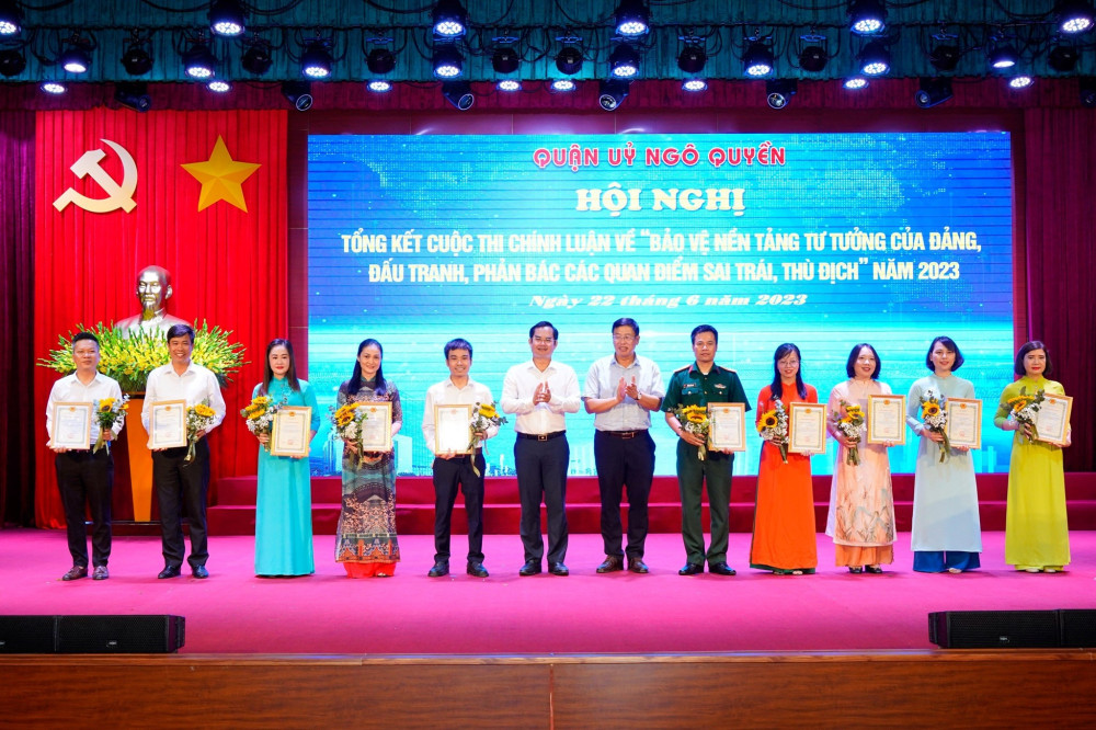 Cuộc thi Chính luận về “Bảo vệ nền tảng tư tưởng của Đảng, đấu tranh, phản bác các quan điểm sai trái, thù địch” năm 2023 tại Đảng bộ quận Ngô Quyền được phát động từ ngày 19/4, đây là đợt sinh hoạt chính trị sâu rộng, thu hút đông đảo cán bộ, đảng viên, đoàn viên, hội viên và các tầng lớp Nhân dân trên địa bàn quận tham gia. Tính đến hết ngày 30/5, Ban Tổ chức Cuộc thi tiếp nhận 2.121 tác phẩm dự thi. Trong đó, thể loại tạp chí có 1.612 tác phẩm; báo viết có 503 tác phẩm; thể loại phát thanh, truyền hình có 2 tác phẩm và video, clip có 4 tác phẩm. Nhiều đơn vị có số lượng lớn tác phẩm tham gia như: Đảng bộ Trường THPT Thái Phiên, Đảng bộ Viện Nghiên cứu Hải sản, Đảng bộ phường Gia Viên. Nhiều đơn vị có tác phẩm dự thi được đầu tư nghiêm túc, công phu: Trường Tiểu học Chu Văn An, Trường THCS Chu Văn An, Trường Tiểu học Nguyễn Du, Trường THCS An Đà, Trường THCS Lý Tự Trọng, Trường THCS Quang Trung.