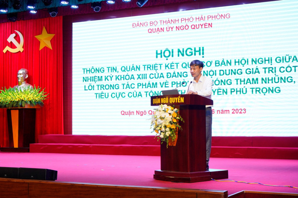 Tiếp đó, Quận ủy Ngô Quyền tổ chức Hội nghị quán triệt, tuyên truyền kết quả Hội nghị Ban Chấp hành Trung ương Đảng giữa nhiệm kỳ Khoá XIII; giới thiệu tác phẩm “Kiên quyết, kiên trì đấu tranh phòng, chống tham nhũng, tiêu cực, góp phần xây dựng Đảng và Nhà nước ta ngày càng trong sạch, vững mạnh” của đồng chí Tổng Bí thư Nguyễn Phú Trọng; Quy định số 85 ngày 07/10/2022 của Ban Bí thư, Hướng dẫn số 99 ngày 20/3/2023 của Ban Tuyên giáo Trung ương về việc cán bộ, đảng viên thiết lập và sử dụng trang thông tin điện tử cá nhân trên Internet, mạng xã hội.