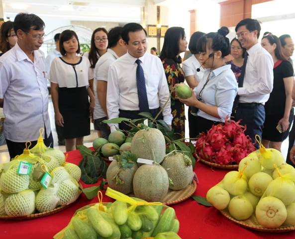 Hội nghị trưng bày 5 gian hàng với hàng chục mẫu sản phẩm là nông sản, thủy sản được trồng trọt, chăn nuôi, chế biến an toàn theo chuỗi giá trị.