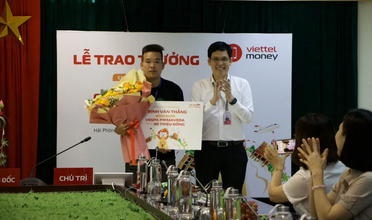 Ngày 21/8, Viettel Hải Phòng tổ chức trao giải thưởng cho 03 khách hàng may mắn trong chương trình khuyến mại “Quét mọi QR lái vespa về nhà” và chương trình “Ngày vàng Viettel Money” Tổng công ty Dịch vụ số Viettel.