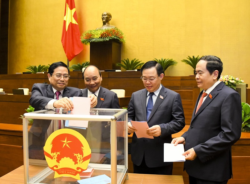Các đại biểu bỏ phiếu phê chuẩn bổ nhiệm 2 Phó Thủ tướng, 12 thành viên Chính phủ