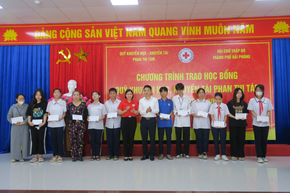 Tại chương trình, Hội Chữ thập đỏ thành phố trao tặng học bổng cho 73 học sinh của quận Lê Chân, Hồng Bàng, Ngô Quyền có hoàn cảnh khó khăn, học giỏi. Trong đó, mỗi học sinh được nhận học bổng với tổng số tiền 2.100.000 đồng cho 3 tháng 9, 10, 11, năm học 2023-2024. Đối với các em sinh viên sẽ được nhận học bổng với số tiền theo phiếu thu học phí của các Trường Cao đẳng, Đại học, số tiền này được chuyển trực tiếp vào tài khoản của các em.
