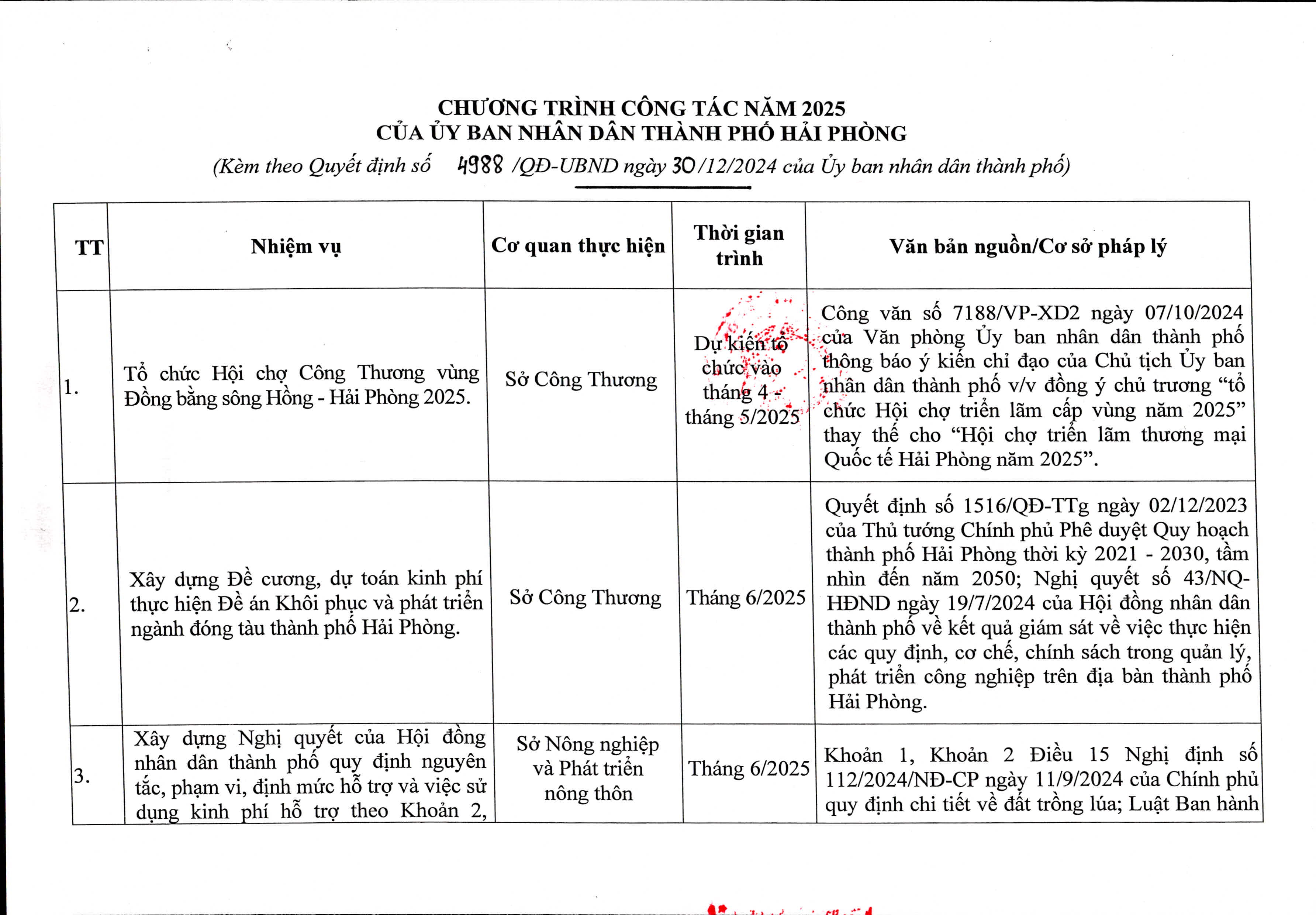 UBND thành phố Hải Phòng đã có Quyết định số 4988/QĐ-UBND ngày 30/12/2024 ban hành Chương trình công tác năm 2025 của UBND thành phố.