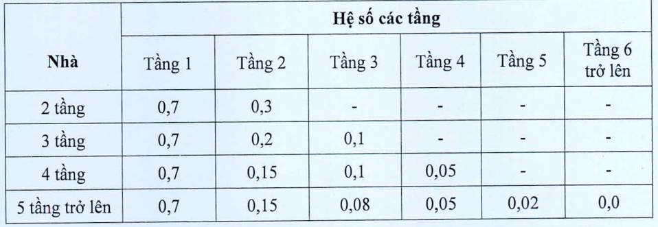 . Đối với những điểm nhà có nhiều tầng, nhiều chủ, hệ số phân bổ giá thuê đất của các tầng được tính như sau: