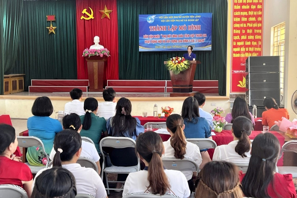 Chiều 8/9, Hội Liên hiệp Phụ nữ (LHPN) thành phố tổ chức ra mắt điểm Mô hình dân vận khéo “Phụ nữ công giáo tích cực tham gia hoạt động Hội và xây dựng gia đình 5 có, 3 sạch” tại thôn Đông Xuyên Ngoại, xã Đoàn Lập, huyện Tiên Lãng.