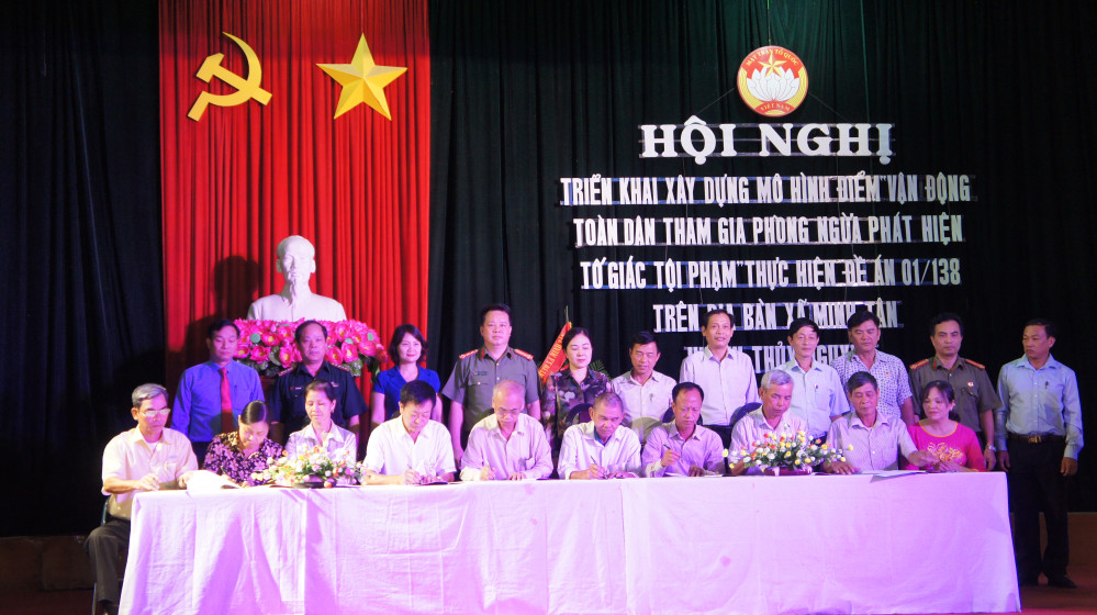 Đồng chí Đỗ Tràng Thành – Phó Chủ tịch Ủy ban MTTQ Việt Nam thành phố, Đại tá Nguyễn Quốc Hùng – Phó Giám đốc CATP cùng đại diện các ban, ngành có liên quan chứng kiến lễ ký cam kết thực hiện mô hình giữa các thôn thuộc xã Minh Tân