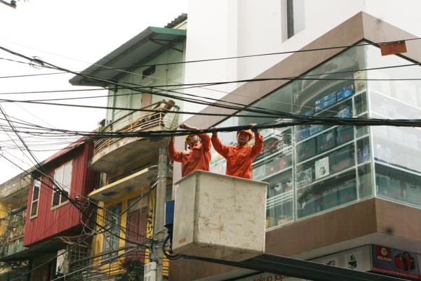 Công ty TNHH MTV Điện lực Hải Phòng ra quân chỉnh trang cáp ngoại vi viễn thông tại các tuyến phố trung tâm quận Hồng Bàng