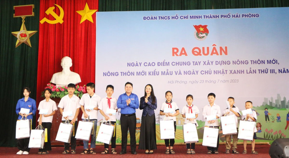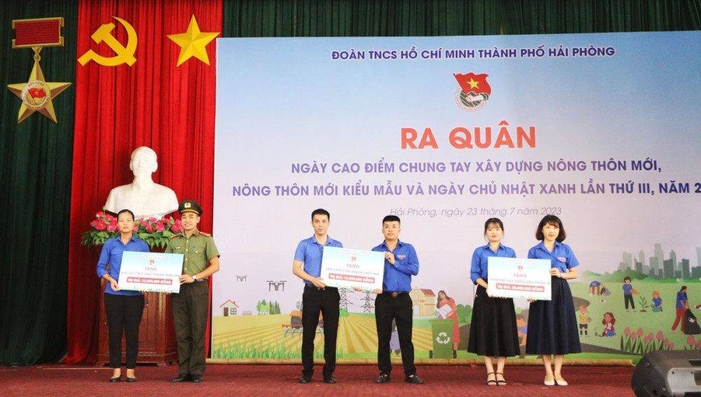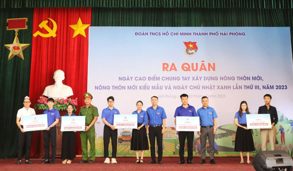 Tại chương trình phát động cấp thành phố, Thành đoàn Hải Phòng đã vận động các đơn vị hỗ trợ kinh phí xây dựng nông thôn mới với tổng trị giá gần 700 triệu đồng, gồm: Tặng 03 nhà Khăn quàng đỏ tổng (trị giá 300 triệu đồng), tặng 20 túi quà an sinh xã hội cho 20 em học sinh có hoàn cảnh khó khăn (trị giá 20 triệu đồng), tặng 01 tuyến đường camera an ninh (trị giá 30 triệu đồng), tặng 10 tấn xi măng (trị giá 13 triệu đồng), hỗ trợ kinh phí lắp đặt QR-code các địa điểm di tích lịch sử (trị giá 10 triệu đồng), tặng kinh phí hỗ trợ sửa 01 nhà nạn nhân chất độc màu da cam (trị giá 25 triệu đồng), tặng 01 Khu vui chơi cho thanh thiếu nhi (trị giá 15 triệu đồng), tặng 01 sân chơi cho thanh thiếu nhi (trị giá 15 triệu đồng), tặng 01 nhà Nhân ái (trị giá 30 triệu đồng), tặng 01 sân chơi cho thanh thiếu nhi (trị giá 15 triệu đồng), tặng 200 cây giống (trị giá 10 triệu đồng), tặng 01 học bổng tạo mẫu tóc (trị giá 40 triệu đồng), tổ chức Chương trình cắt tóc miễn phí cho người dân tại xã Kiền Bái, khánh thành 01 vườn ươm thanh niên trên địa bàn huyện Thủy Nguyên, tổ chức Chương trình khám mắt, khám chữa bệnh, cấp phát thuốc miễn phí cho người dân.